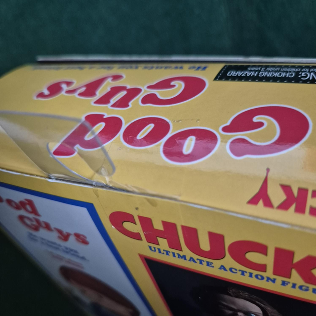 NECA Cult Classics Series 4 Chucky from Child's Play 3. Factory sealed in original yellow Good Guys window box. Features swappable heads: standard angry, scarred, and pizza face variants—shown on packaging. Includes knife, axe, and other accessories. Never opened, excellent condition with minimal shelf wear. Vintage 2006 release—great for fans or collectors.